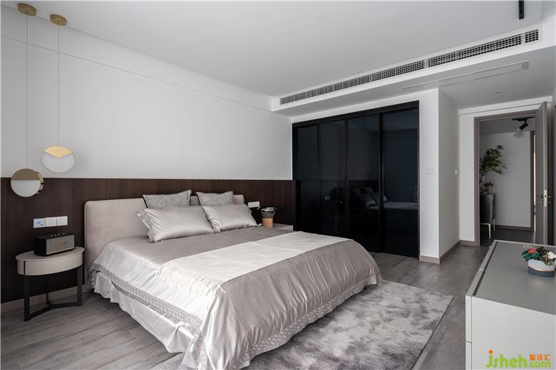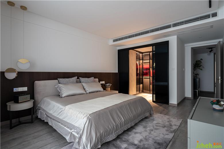 考慮到男業(yè)主愛品酒這個習慣,設計師從入門開始就加入酒的動線。玄關處沒有直接使用酒柜,而是加入了一個復合的吧臺,小吧臺配上兩把高椅,酷似酒吧的一隅,作為自由交流的區(qū)域,也許只有一平米的占地,平日里在這里品酒聊天辦公,也是足以讓你提起興致。