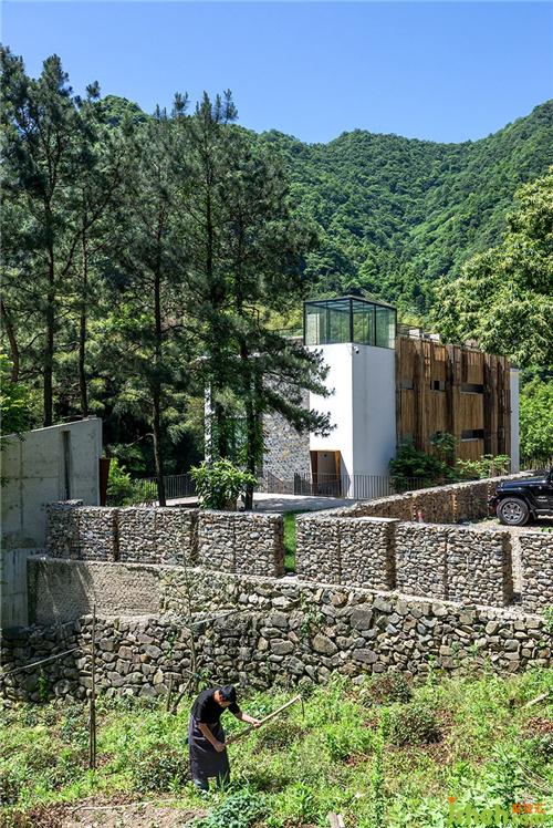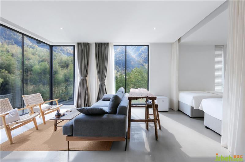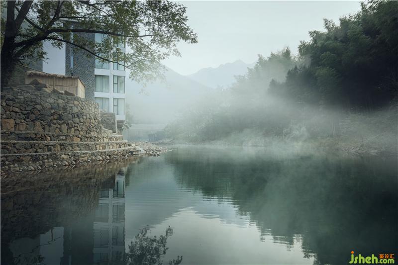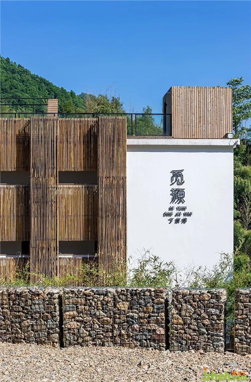 覓源在空間上營造了一種侘寂之美,靈感來源于皖南鄉(xiāng)村白墻灰瓦的傳統(tǒng)民居,建筑保留傳統(tǒng)自然生活方式的理念,在溪流與山坡的環(huán)繞中顯得安靜空靈。