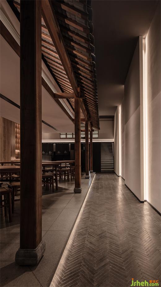在整個面館的空間布局上,設(shè)計師力求大尺度、簡約、層次分明!蘇州姑蘇橋面館設(shè)計從宋氏房梁榫卯結(jié)構(gòu)到明式定制實(shí)木家具,再到大面積留白,移步換景,力求呈現(xiàn)精致、雅致、和諧之美!讓傳統(tǒng)文化和當(dāng)代藝術(shù)嫁接,從而形成一種新的生活美學(xué)和生活方式!