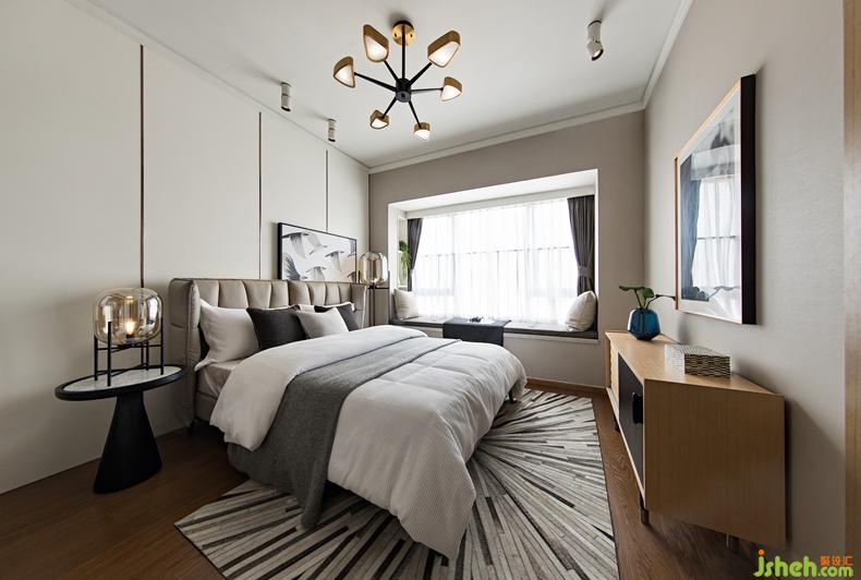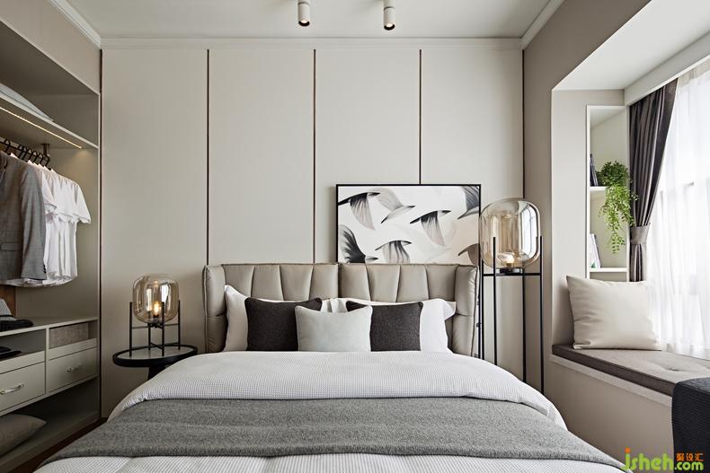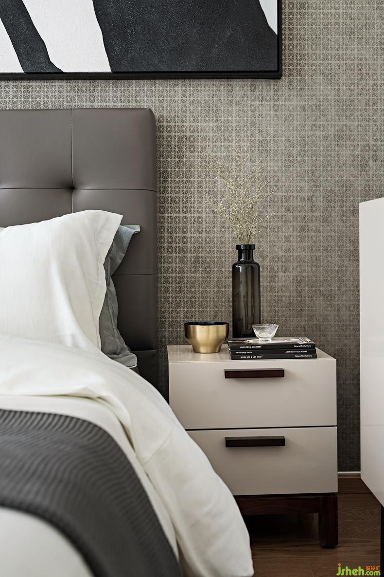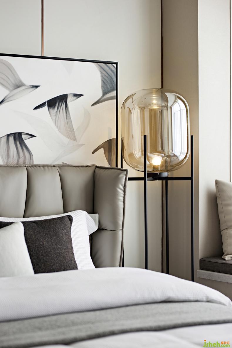 皮質(zhì)軟包床搭配精巧設計的黑檀木床頭柜,高挑的落地燈讓空間更有層次感,將現(xiàn)代韻律展現(xiàn)得淋漓盡致,深圳設計公司整個空間仿佛一幅精美的空間畫次臥灰調(diào)背景墻和素凈的家具床品,是優(yōu)雅風情的最好色彩空間在深與淺的碰撞中造就一個詩意的存在。