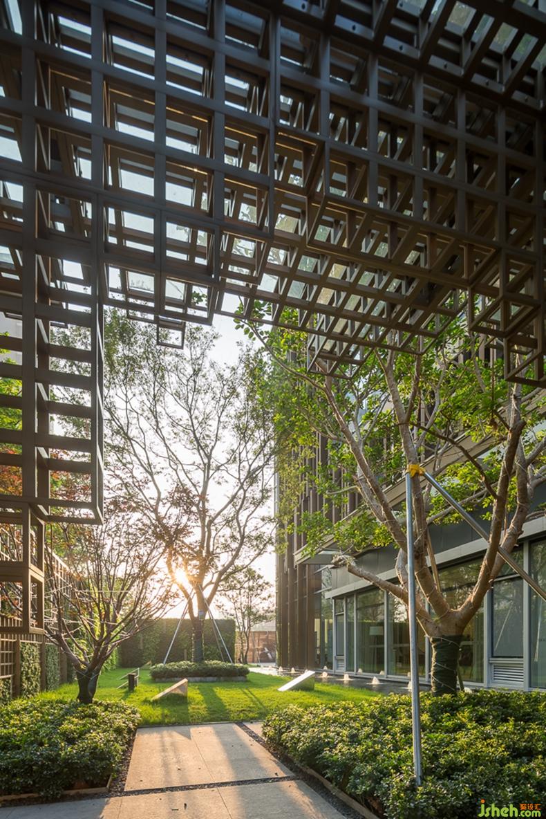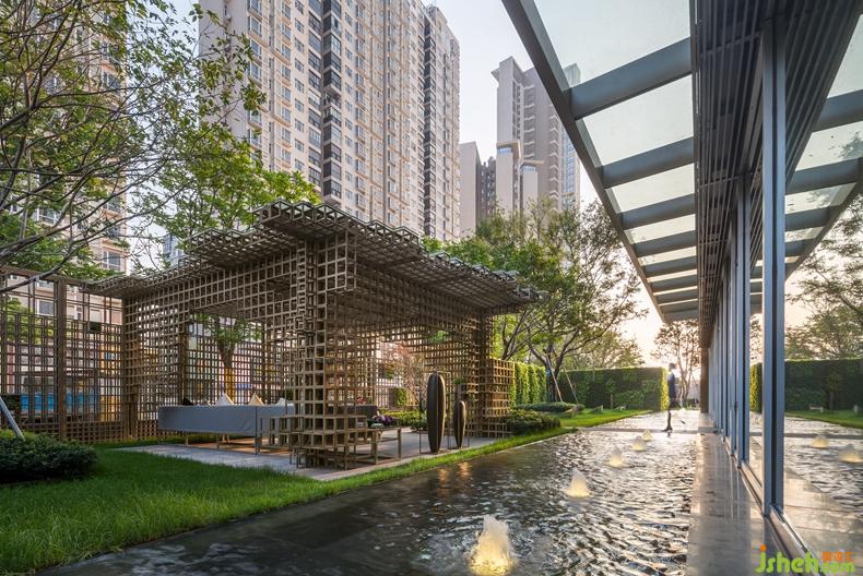亭的設(shè)計(jì)采用借景手法,于此處向外觀景,美景猶如框景掛畫一般,藍(lán)天白云,日出日落,展現(xiàn)在眼前,自然和諧,宛如天成。亭與周邊環(huán)境完美融合,卻又出類拔萃,呈現(xiàn)出完美的庭院空間。