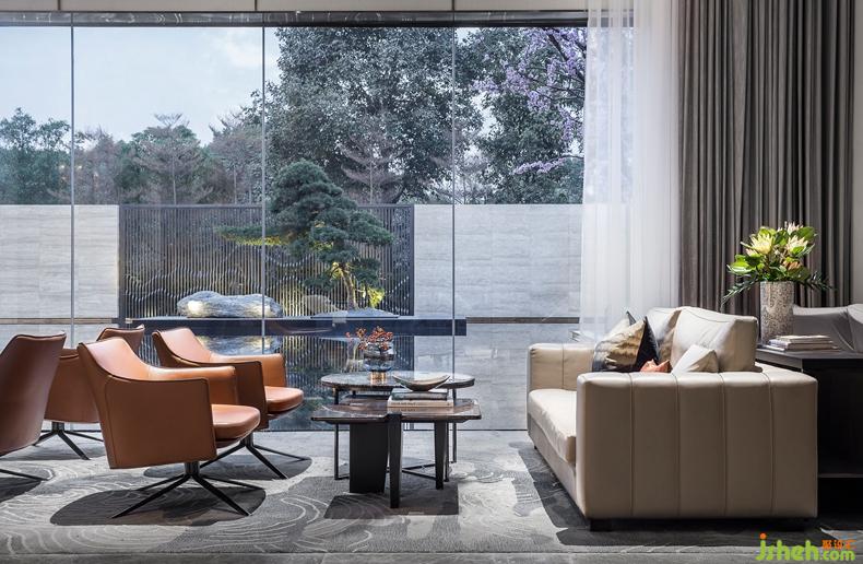 舒適地毯自然地劃分出洽談區(qū),整體開放性的布局,促進(jìn)多元化的交流與互動,同時落地玻璃向環(huán)境借景,呈現(xiàn)出一個融合卻又獨立的利落空間.