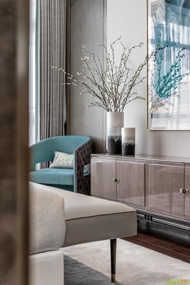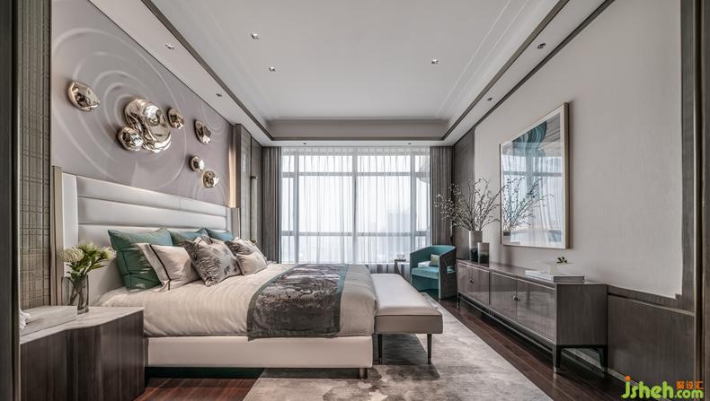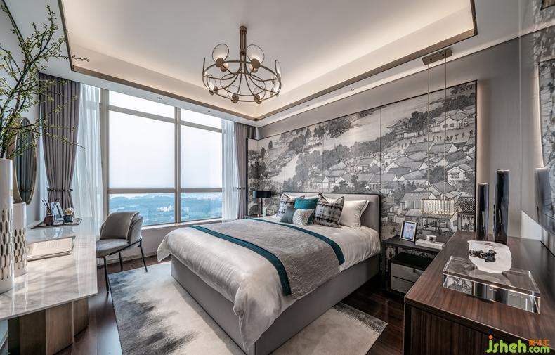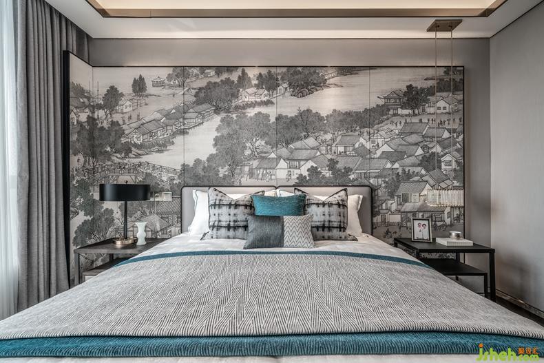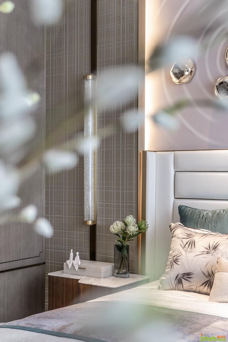 主臥空間,融入東方禪意哲美,輕漾出一片漣漪的水紋與山石布局無限通達(dá)心境況味,是乍見之歡的視覺感染,更是久處不厭的靈魂陪伴。室內(nèi)設(shè)計(jì)師在動(dòng)靜之間棲息身心,在中西之間徜徉藝術(shù)。