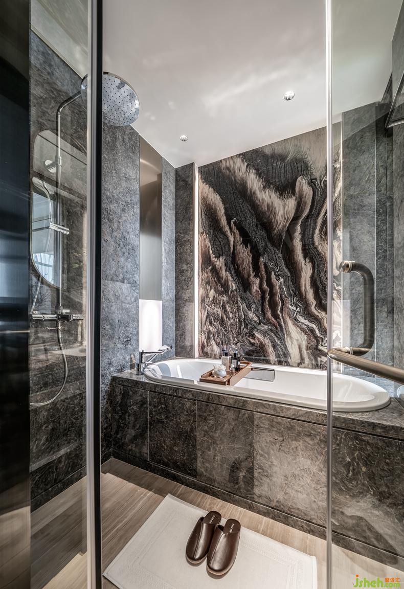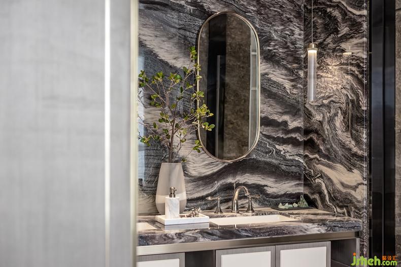 洗手間大氣恢弘的背景墻,碰撞出空間深邃靜雅的氛圍,在細(xì)節(jié)處彰顯豪宅之尊.