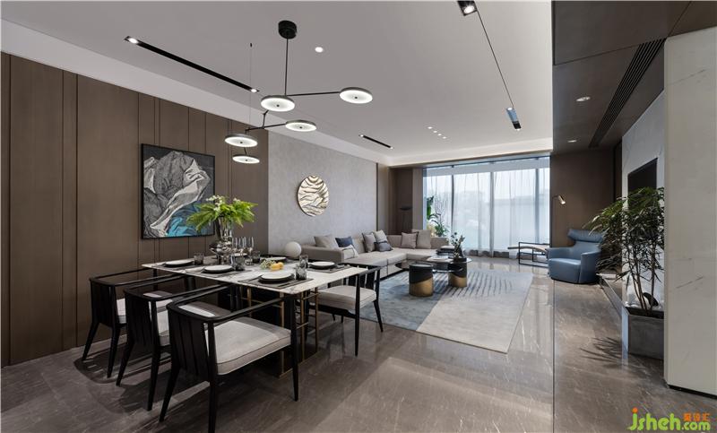室內(nèi)建筑化的設(shè)計手法,樣板房設(shè)計使空間更具有立體感,啡色的大理石地面,深褐色木質(zhì)配搭,米灰色沙發(fā)及極具奢華質(zhì)感的古銅鑲嵌,為空間渲染出沉穩(wěn)的基調(diào),煥發(fā)靜謐的氛圍。構(gòu)成了一幅品質(zhì)感十足的空間畫面。整個項目,不同的空間需求展現(xiàn)了各具特色的氛圍,契合人類情感的變幻,帶來精神層次的對話。