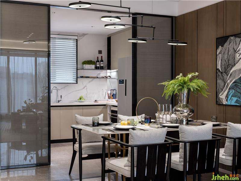 人創(chuàng)造了空間,空間反哺于人,餐廳區(qū)通過兩扇玻璃門將光線引入室內(nèi),同時也將儀式感端上餐桌,營造舒適的用餐氣氛,舒暢人的心靈。