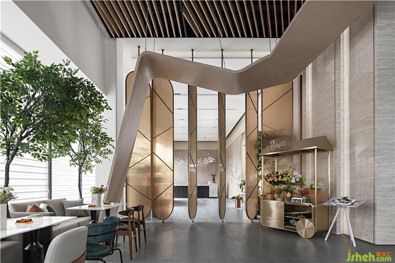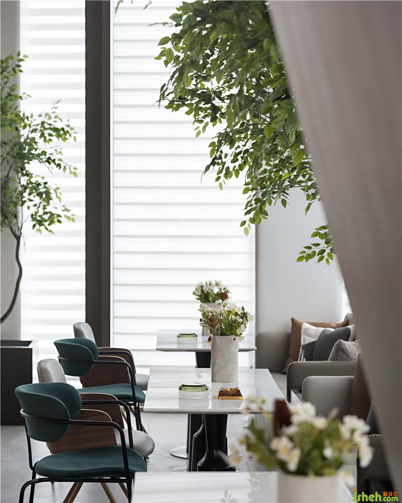 花藝區(qū)細節(jié)丨浪漫新義·識自然繁茂的植物帶著自然氣息沁潤空間,室內(nèi)設計師純白與金屬色注入輕盈華麗的氛圍,流暢帶著韻律般的高低起伏,如山海之間的對話,平靜且令人放松,讓生活在城市森林里面的人們也能被自然所環(huán)抱。