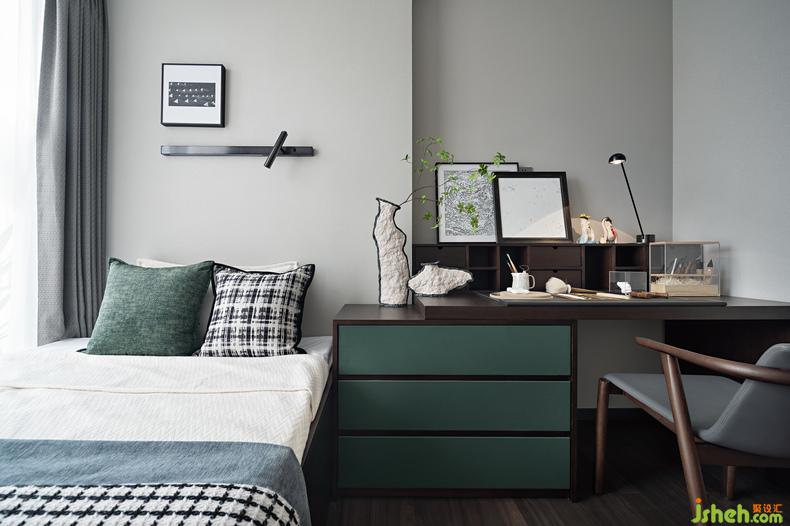 客臥的設計感知同樣彰顯著主人對生活的理解,一張榻榻米的多功能詮釋,一個更像工作室的手作空間,給生活更多洞察的可能,主人在DIY工作臺上將生活中的點滴沉淀,凝結(jié)生活中的睿智與感動,用心去生活,用生活去回應生機。