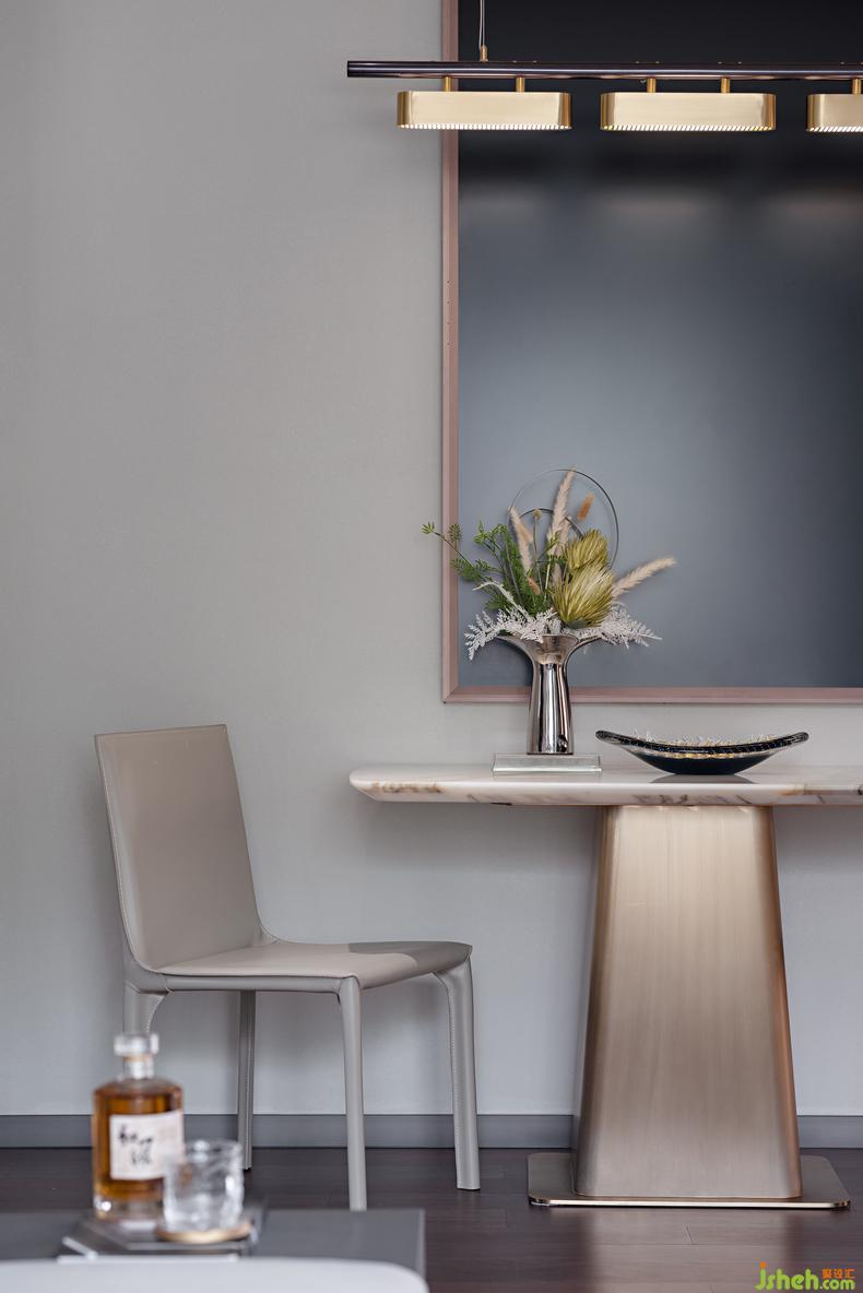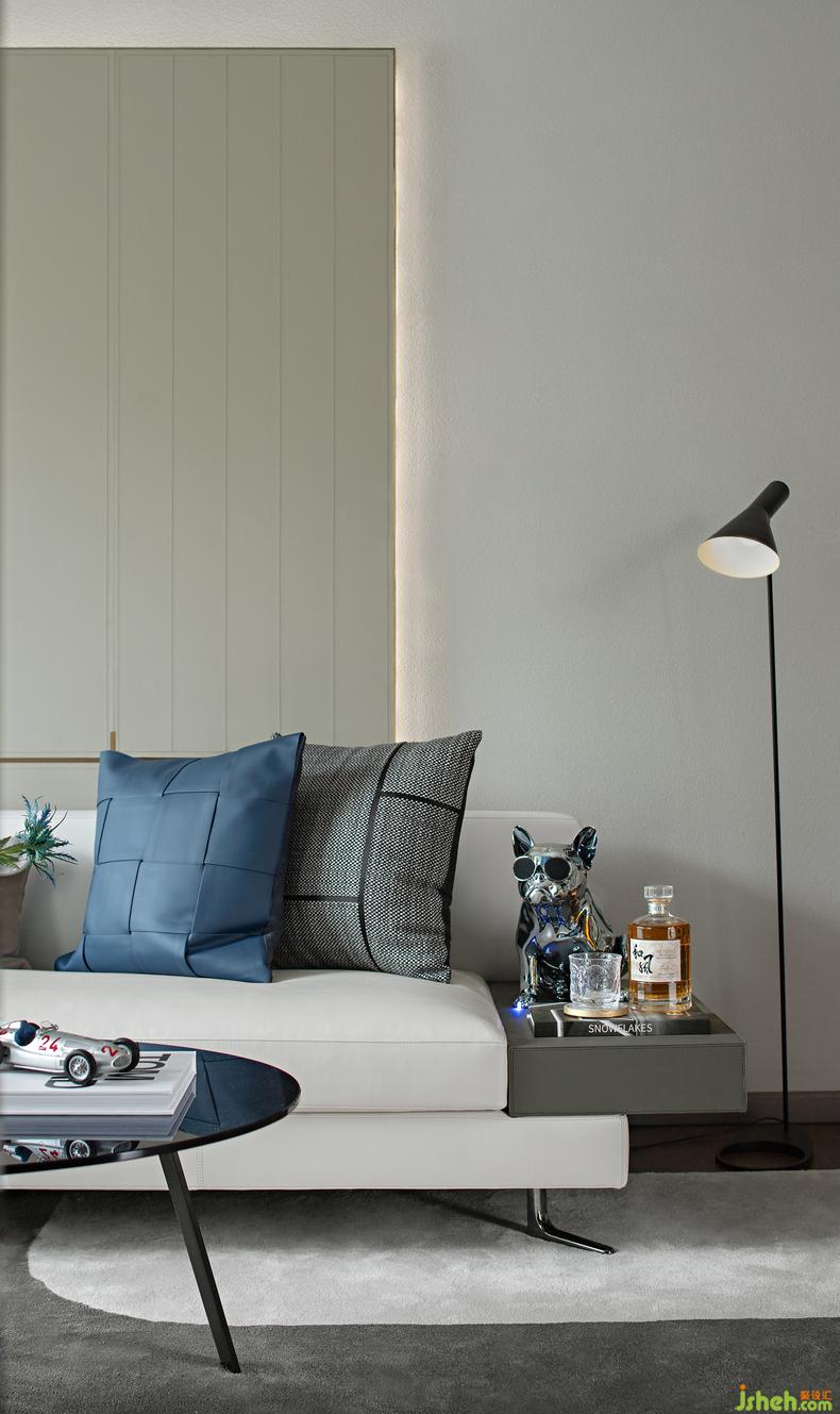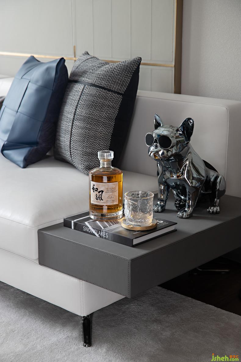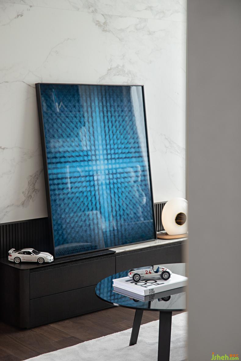 將愛好融入空間的美學趣味中,對手辦的青睞與對車模的鐘情以科技元素的掛畫搭配襯托,樣板房設計多元化的收納布景裝下對汽車與科技的好奇,主人對自主空間“大男孩兒式”的表達方式,簡單直接并充滿著紳士與激情的荷爾蒙,對于自己的生活一絲不茍,對于的自己的個性不假于心,看似是空間的敘事,誠則是熱愛的蔓延。