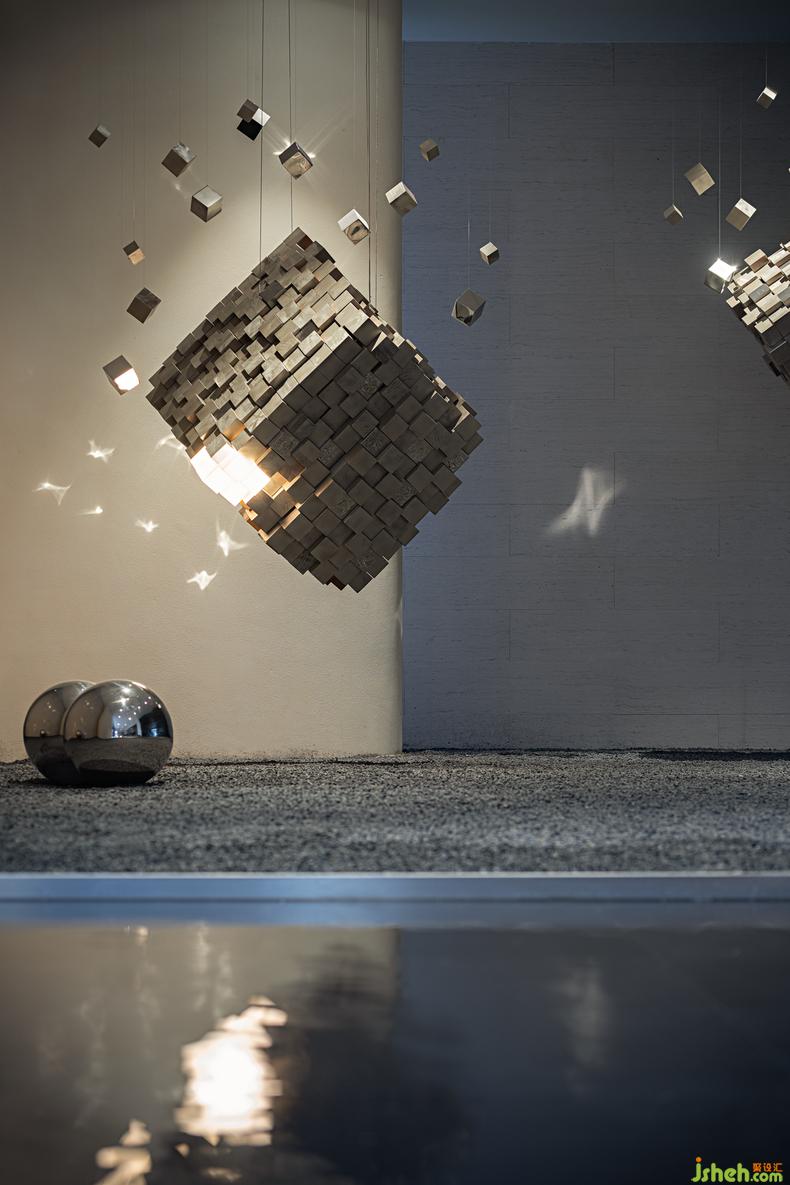 《浮石》裝置丨 當(dāng)科技量子化身無(wú)限的宇宙魔方,帶著星光閃耀的垂墜散體,樣板房設(shè)計(jì)拓展著整個(gè)空間的無(wú)窮無(wú)盡,簡(jiǎn)約卻又創(chuàng)意十足的構(gòu)成設(shè)計(jì),打造著極聚視野焦點(diǎn)的吸引力,光影亮起,仿佛穿梭時(shí)空的未來(lái)幻境。