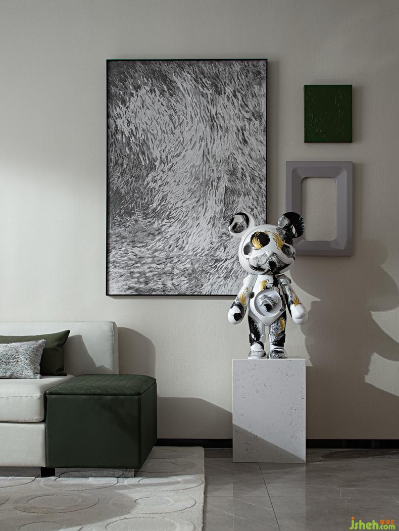 全景落地窗讓光線被最大化的保留,同時(shí)也打開了探索的視野界面,素色的布藝沙發(fā),立體的抽象掛畫,星際熊的潮流人偶,都是居者對(duì)生活熱愛的呈現(xiàn),無需繁復(fù)的色彩,即能鋪陳無限的想象,進(jìn)行一場(chǎng)與樂趣與熱愛對(duì)話... ...