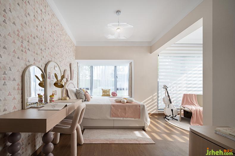 女孩房的設(shè)計(jì)以精妙絕倫的動(dòng)線輪廓展開(kāi),全景落地窗拉近了天空與童趣的距離,以粉色為主基調(diào)的空間里,有著馬賽克色彩墻面的動(dòng)感,兔耳朵布景床幾的夢(mèng)幻,更有屬于大提琴的時(shí)間,隨著陽(yáng)光輕盈流動(dòng)的旋律,音樂(lè)才情隨著成長(zhǎng)不斷延續(xù)。