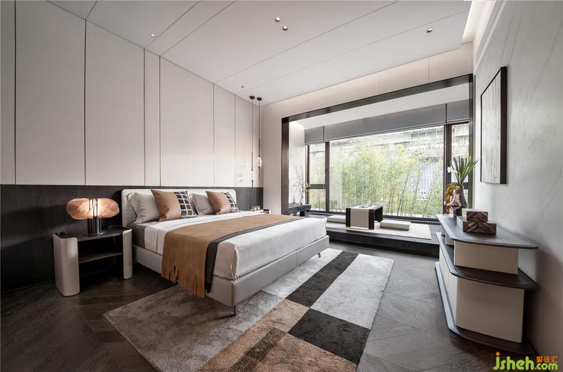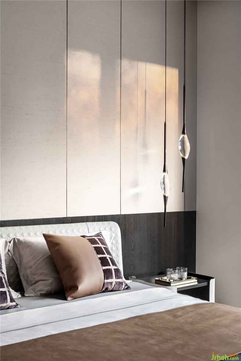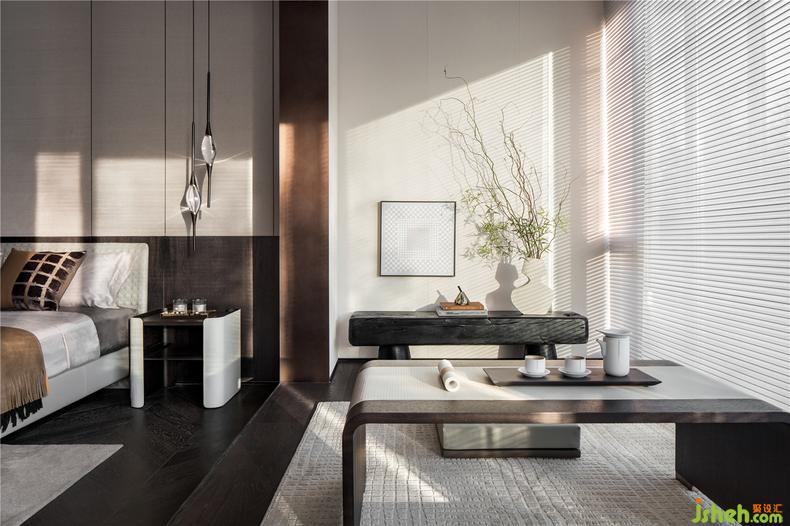 室內(nèi)設(shè)計(jì)師順著陽(yáng)光由淺入深打造成溫文爾雅的心情居所,床品、工藝品與燈具之間通過赭色到淺色再到自然色的運(yùn)用,明亮的色澤與啞光色澤的變換,優(yōu)雅盡顯,符合長(zhǎng)輩簡(jiǎn)居舒適的氣質(zhì);將飄窗利用,布置了精致的茶臺(tái),讓長(zhǎng)輩能隨時(shí)享受閑適的好時(shí)光。