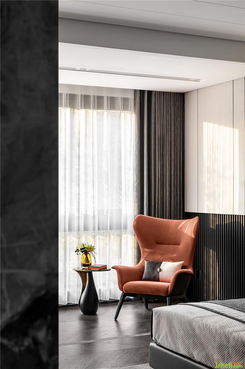 通透的結(jié)構(gòu)包容每一寸陽(yáng)光,于落地窗旁的愛馬仕橙桌椅小憩,展現(xiàn)出睿智與溫馨的感覺,將理性與感性結(jié)合出的格調(diào),穿梭其間,流暢舒適,衣帽間整潔里透露著精致生活的品質(zhì)。
