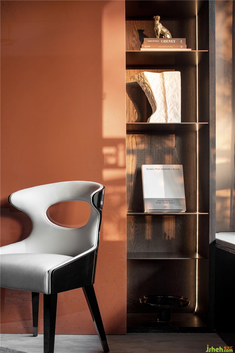 陽光在深澤空間中劃出和諧的靜謐,愛馬仕橙鋼琴漆的反光與金屬感的點綴像是古典樂一般,室內設計師充滿著對歲月哲學,滑動的柜面后面一半驚喜一半神秘,靈感在這里或者在那里。