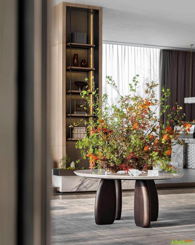 接待前廳丨開(kāi)闊大氣的圓形布局一展新式奢華,金屬、大理石、花崗巖自帶厚重華貴質(zhì)感、乳白、米白、金屬自由色與自然植物映照山海天境,一切與水清沙白,蔥郁繁茂的海岸風(fēng)光融會(huì)貫通,處處透露著尊享精致的沉靜之感。室內(nèi)設(shè)計(jì)師