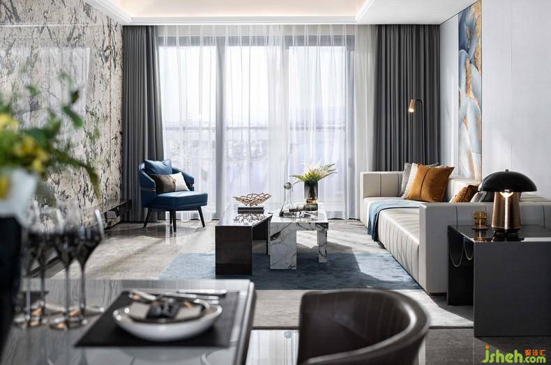 在講究秩序的平和空間中,陽光潤澤的升級在別致的家具中顯露,室內(nèi)設(shè)計師如簡潔線條的皮質(zhì)沙發(fā)和優(yōu)美曲線的單椅,帶來平衡之美中的小小驚喜。清潤的色調(diào)中參入意式格調(diào)的深藍與奢橘,潛移默化的和諧相融,舒適與格調(diào)從容蔓延。