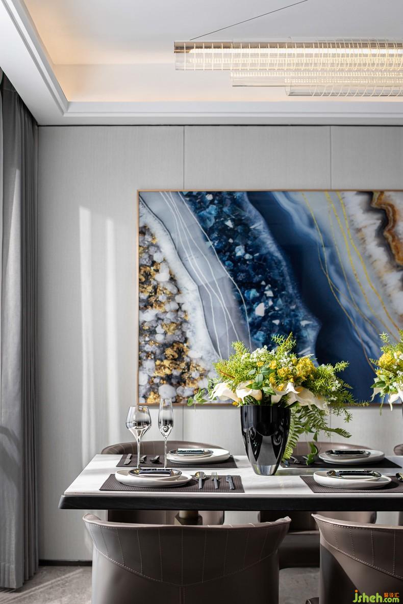 餐廳丨通過細節(jié)與各種材質(zhì)的探索去創(chuàng)造出戲劇化的效果,增添生活中的儀式感,綻放享受與品位的魅力,棕色系和諧簡約的底色襯托出家居與餐具的簡約大氣,恰如其分的營造出舒適奢享的生活氛圍。