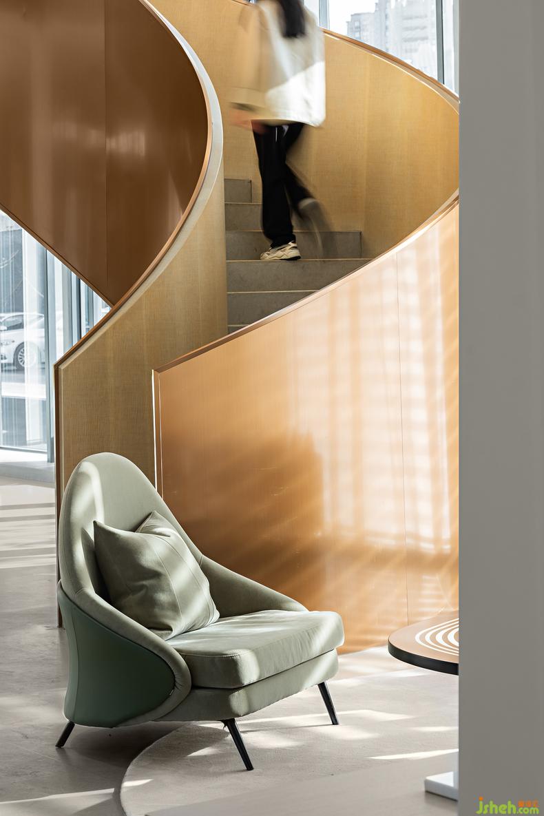 旋轉(zhuǎn) 丨結(jié)構(gòu)與視角構(gòu)成“各種各樣的空間”,光影經(jīng)由玻璃投下自由的舞蹈,裝修設(shè)計(jì)灑在金色的樓壁上,不可名狀、不予置評,如此甚好。