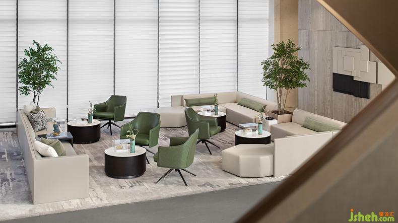 深度洽談區(qū) 丨米白與綠意生機(jī)交織蔓延,優(yōu)雅閑適流動在空間的線條與縫隙中,裝修設(shè)計(jì)線條感的組合沙發(fā),既滿足視覺與感覺的舒適感,也滿足場地功性能使用、靈活多變的需求。
