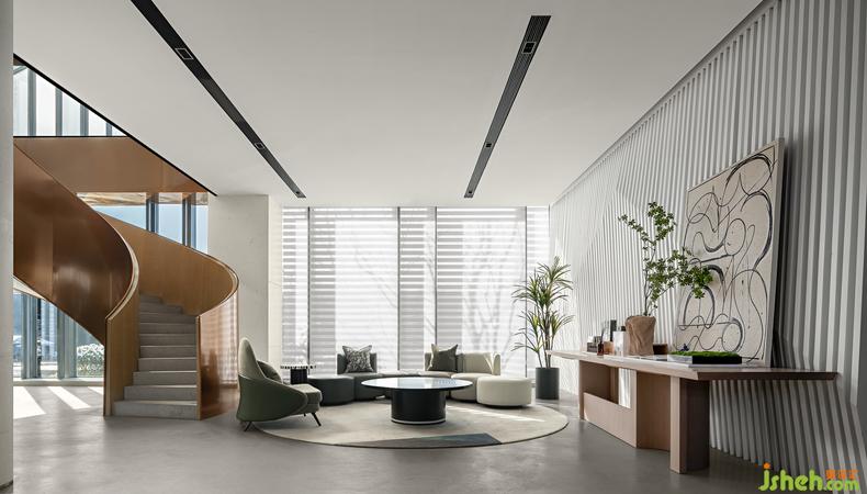 創(chuàng)作暖場區(qū) 丨流浪的線條在此找到歸宿,大面積的灰色與清新溫柔的綠調(diào)在空間內(nèi)游弋,裝修設(shè)計(jì)百葉窗環(huán)繞玻璃立面,陽光見縫插針的撒進(jìn)來,一旁的長桌上擺放的香薰器物,此刻的你,可以窩在沙發(fā)里享受閑暇,也可以擺弄時光。