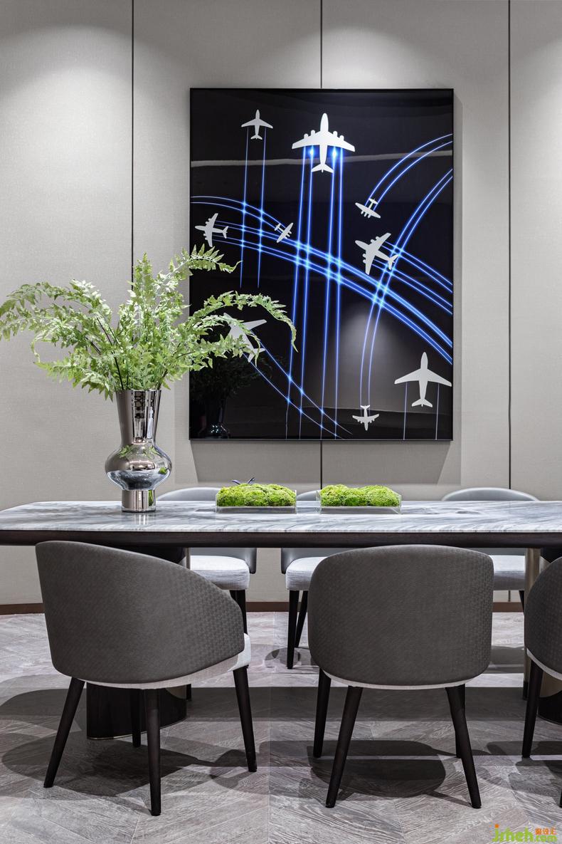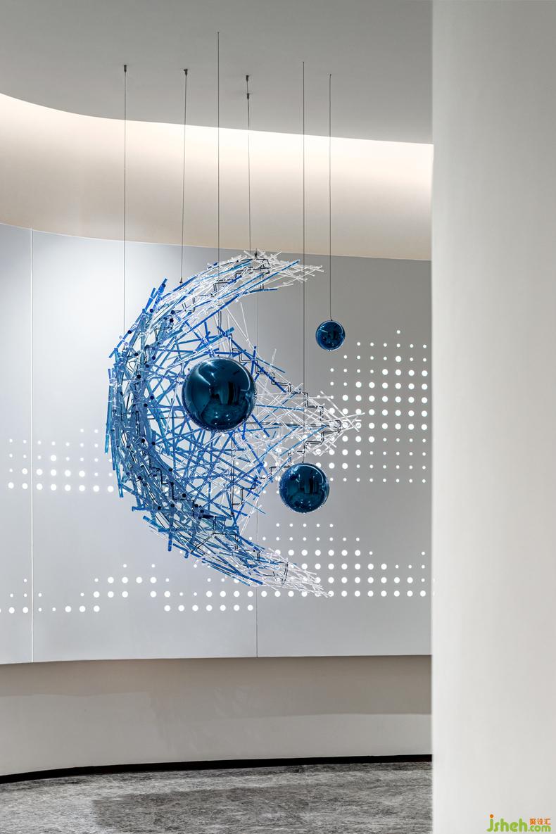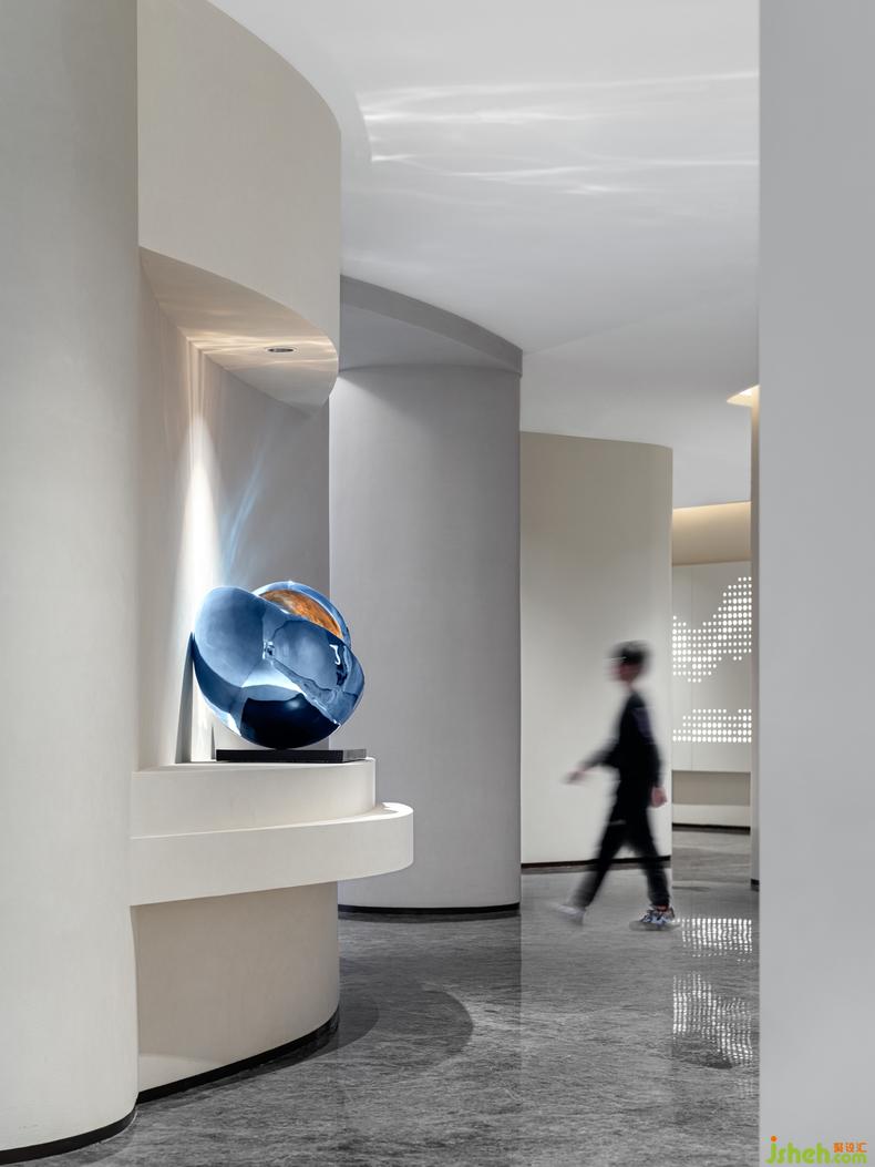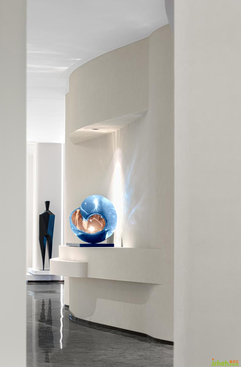 走廊丨 動(dòng)線的流通總是可以成為契機(jī),來激發(fā)更多能量的釋放,室內(nèi)設(shè)計(jì)師一處流線波紋的創(chuàng)意靈感,透過視野的角度呈現(xiàn)自由的變幻,自身的蔚藍(lán)的光影配合光源的反射,讓體驗(yàn)更加豐富、真實(shí)和多元。