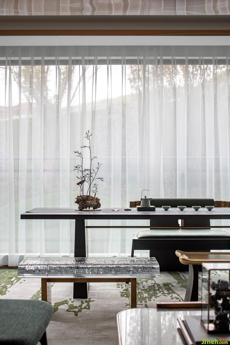 一抔禪意的凈土,一棵寫意的花枝,把意向山水的組合融入這片屬于茶的世界里,室內(nèi)設(shè)計師在陽光的恣意之下,靜坐其中即可感受氣韻環(huán)繞,雅居的愜意使得身心都暢快起來。