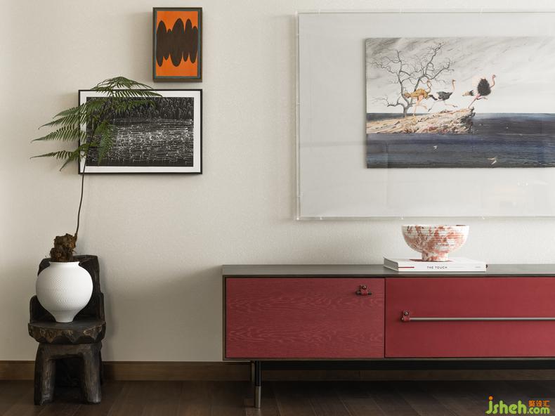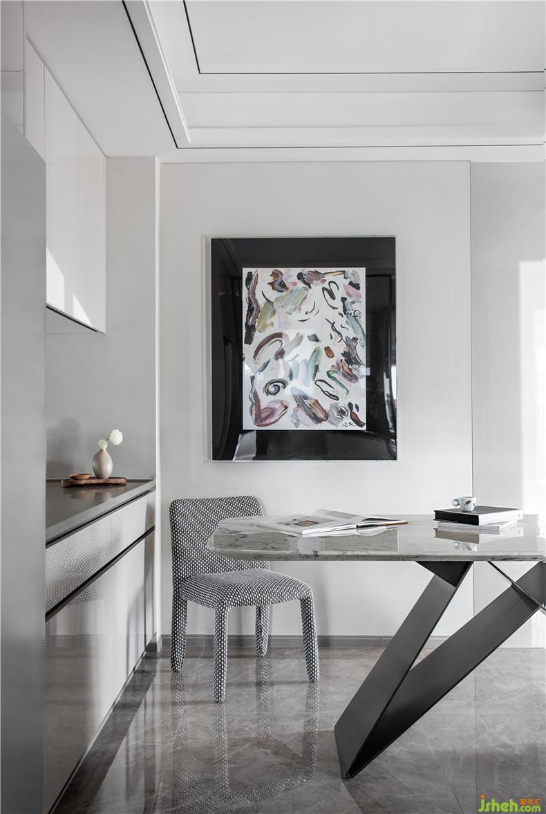 進入主臥,映入眼簾的是主墻面與家具使用了冷白的材質(zhì)肌理,輔以暖色調(diào)的線條、鯨藍色的座椅、禪靜的綠植醒目清新,而抽象的畫作及裝飾都是主人的收藏品,作為陽光灑落室內(nèi)的關(guān)系色彩,讓居住在理性之中擁有溫柔的姿態(tài)。