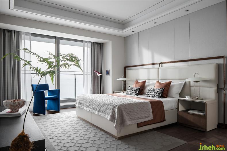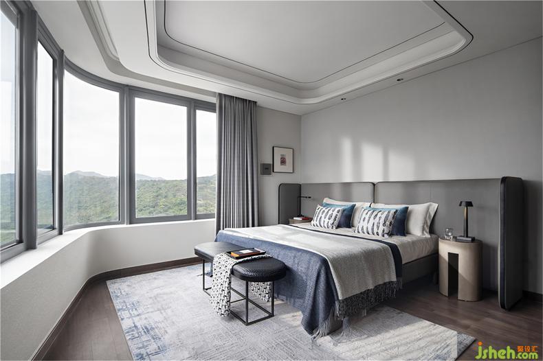 客臥丨開闊的視野能直接眺望到海邊的景致,將私密與愜意融匯其中,售樓處設(shè)計令家人和朋友每次都不舍離去。灰與藍的邂逅,天生帶著一種冷靜的理性底蘊,摒棄繁復(fù)的粉飾,給予了精神世界無限的力量和自由,給空間氣場以秩序的營造與品位的凸顯。