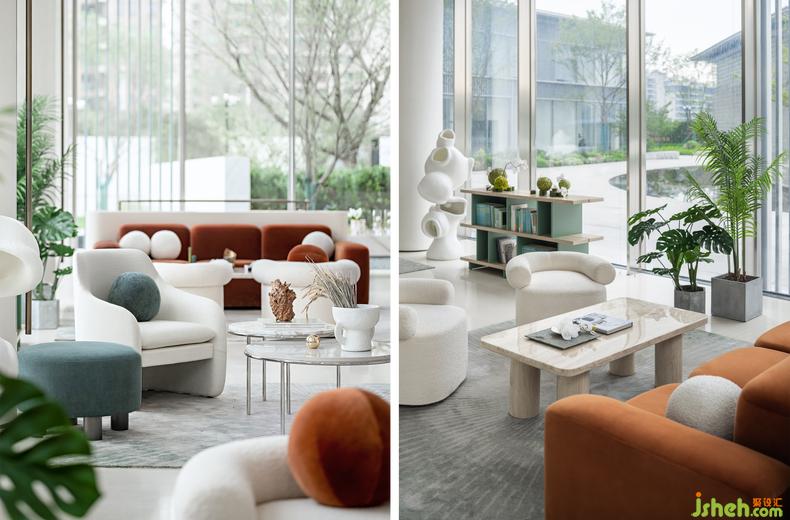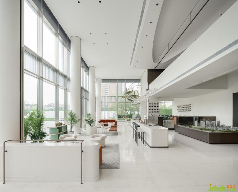 在豐沛的時間與日光下,將生態(tài)色感融入設計中,給予人最放松的空間感受,售樓處設計為思想與動態(tài)留下不著痕跡的溫柔。