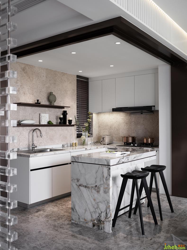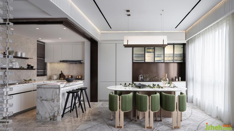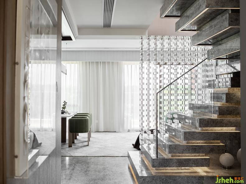 從一層至二層丨階梯是空間的鋪陳,通過直上的轉角,樣板房設計讓不同的空間被理解和賦能,創(chuàng)意的冷色調琉璃質感的階梯,讓空間的美喚醒強烈的情感,給未知和創(chuàng)造在情感中,一種故事的蔓延。