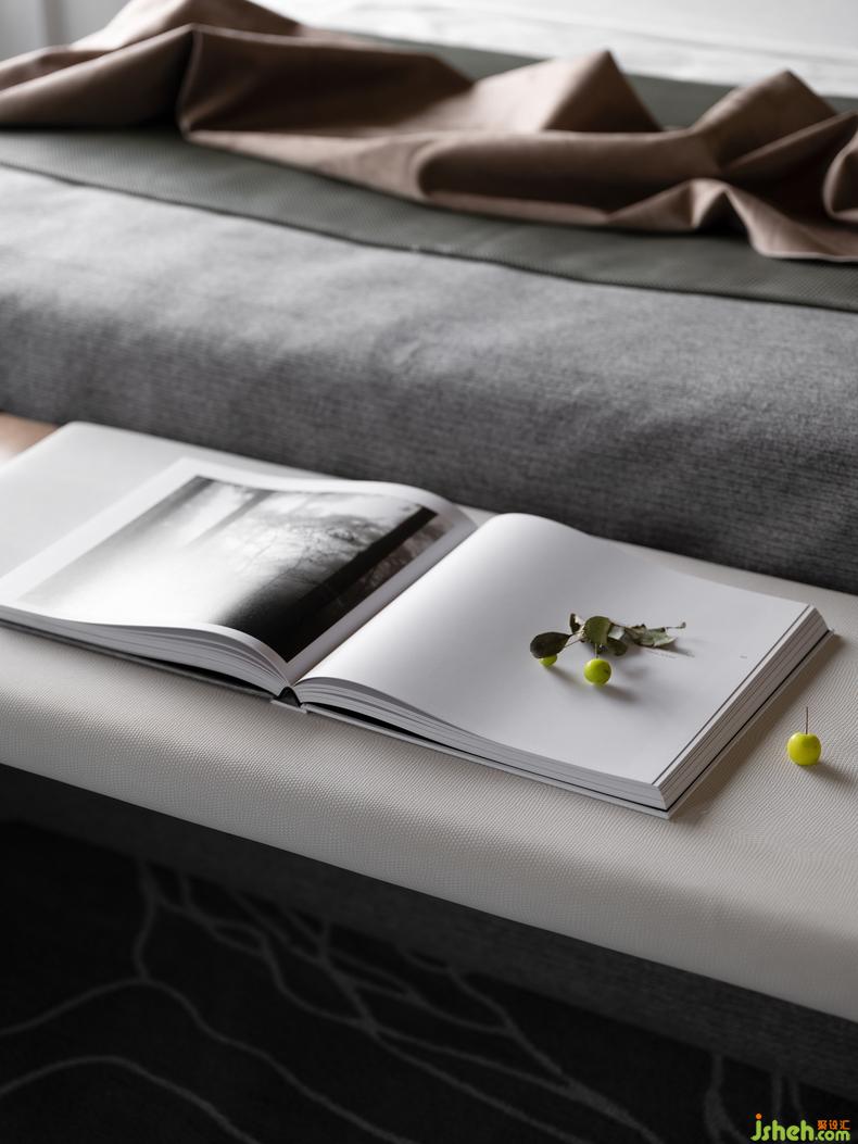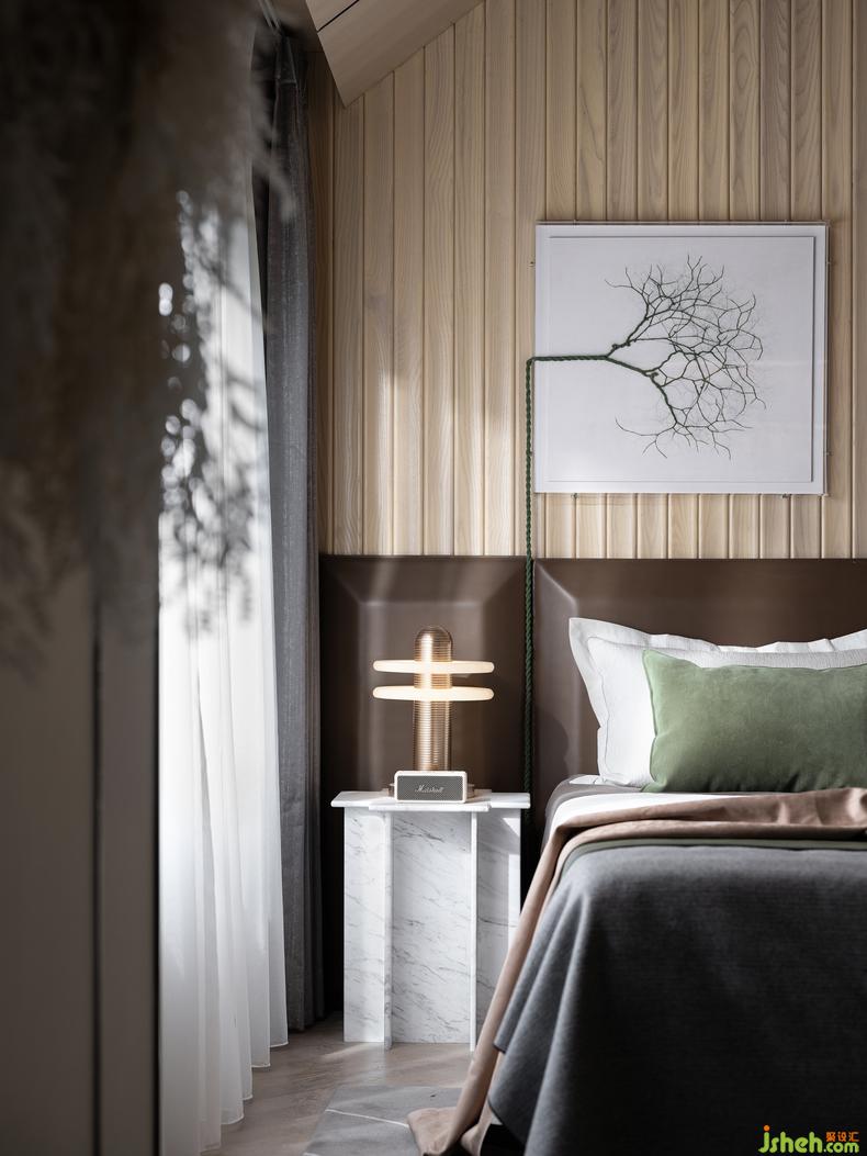 主臥丨摒棄繁復的裝飾是一種自由的觀感,在某種意義上,一體化軟硬裝空間,通過簡約的木質基調進行空間架構,保證了空間的整體感,也讓舒適不言而喻,頂部的角度裝點和縱深的視覺鋪陳,在落地飄窗的映射下充滿靈動,營造著一種東方的韻律和價秩序的考量。