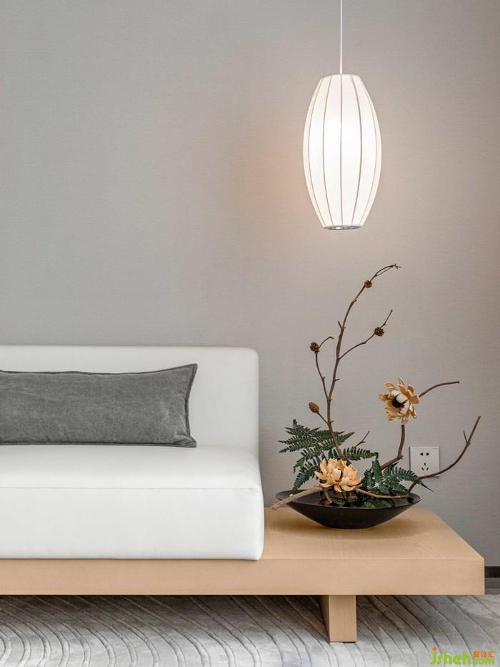 空間設(shè)計定位為日式禪意,與中式相比,日式美學(xué)在呈現(xiàn)上更加簡潔淡雅。以白色、原木色和大地色為主的日式樣板間,充滿著獨到的情感表達?;野?,奠定了清冷之調(diào),跳躍其間的暖色帶來愉悅之感;留白氛圍、精致的盆景其器皿,在細節(jié)處勾勒出主人雅致的簡約美學(xué)和生活方式