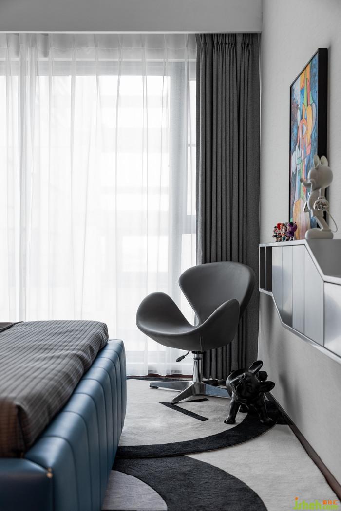 起居空間丨墻壁的創(chuàng)意裝置,床頭的創(chuàng)意燈具,每一處都在彰顯居者藝術(shù)的氣息;落地的光影為這一隅屬于熱愛的空間,呈現(xiàn)著可以治愈心靈的安全感和滿足感,方正通透的格局,也使得居者對(duì)生活的真誠與熱愛,被演繹的淋漓盡致,無需繁復(fù)的鋪陳,自有格局的角度.