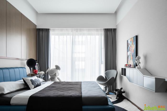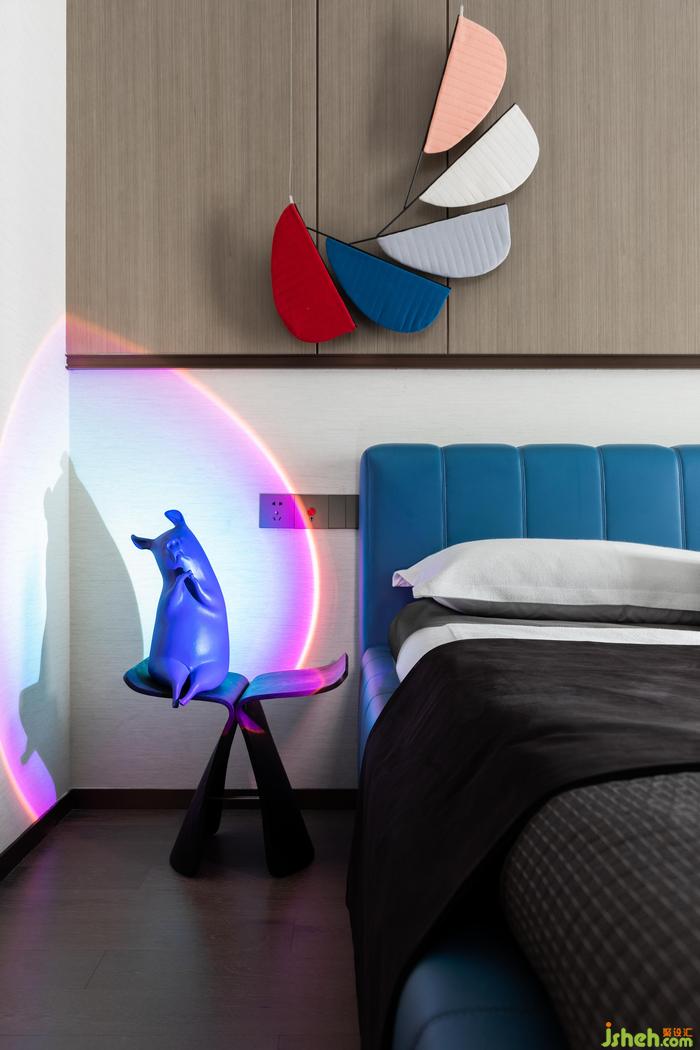 全藍(lán)丨整體的格局給予居者可感知的空間深度,同時(shí)又確保了足夠的私密性,靈活而開放的整體氛圍,在簡約的色調(diào)上更顯開闊,通體科技藍(lán)的床體色調(diào),更為空間增加了一抹冷冽的動(dòng)感