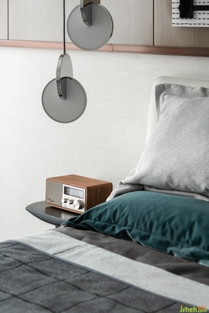 臥室丨落地窗的通透視野搭配著色調(diào)素雅的起居空間,讓創(chuàng)意十足的元素配飾與床頭擺件產(chǎn)生關(guān)聯(lián),在相同元素的串聯(lián)下,屬于起居的故事即刻便開始書寫,樣板房設(shè)計(jì)有居者睡前閱讀的延伸,也有居者聆聽音律的熱愛,生活就是隨性的細(xì)節(jié)轉(zhuǎn)換。