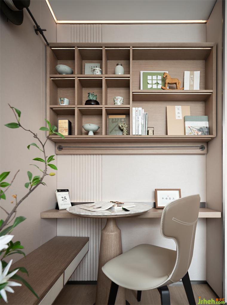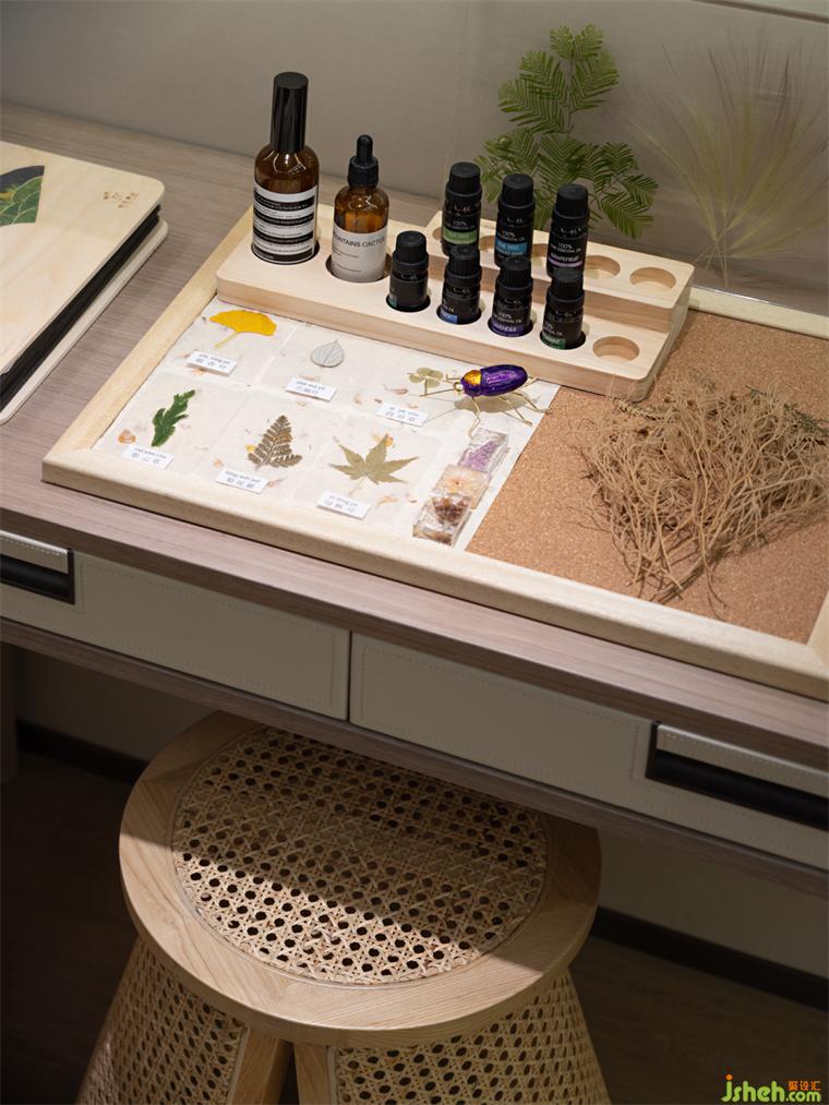 工作室丨濃郁的生活場景化氛圍,永生植物藝術(shù)品是居者追逐夢想的方式,樣板房設(shè)計空間內(nèi)放置的相關(guān)工具和作品都是她對此事業(yè)日積月累的痕跡,讓居住者在大都市之中尋求一個安放自我的空間,既能將生活處理得井井有條,也能將自己的愛好踵事增華。