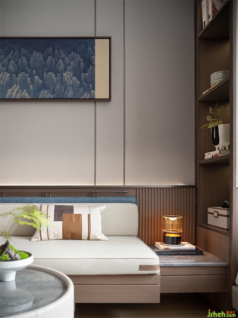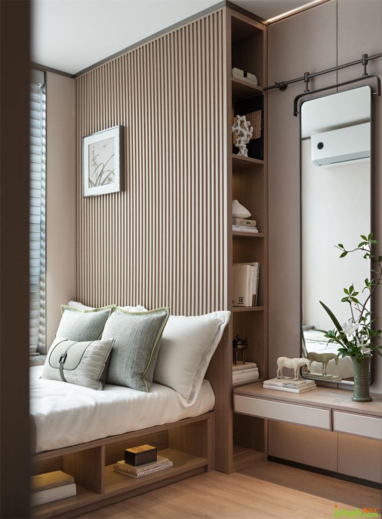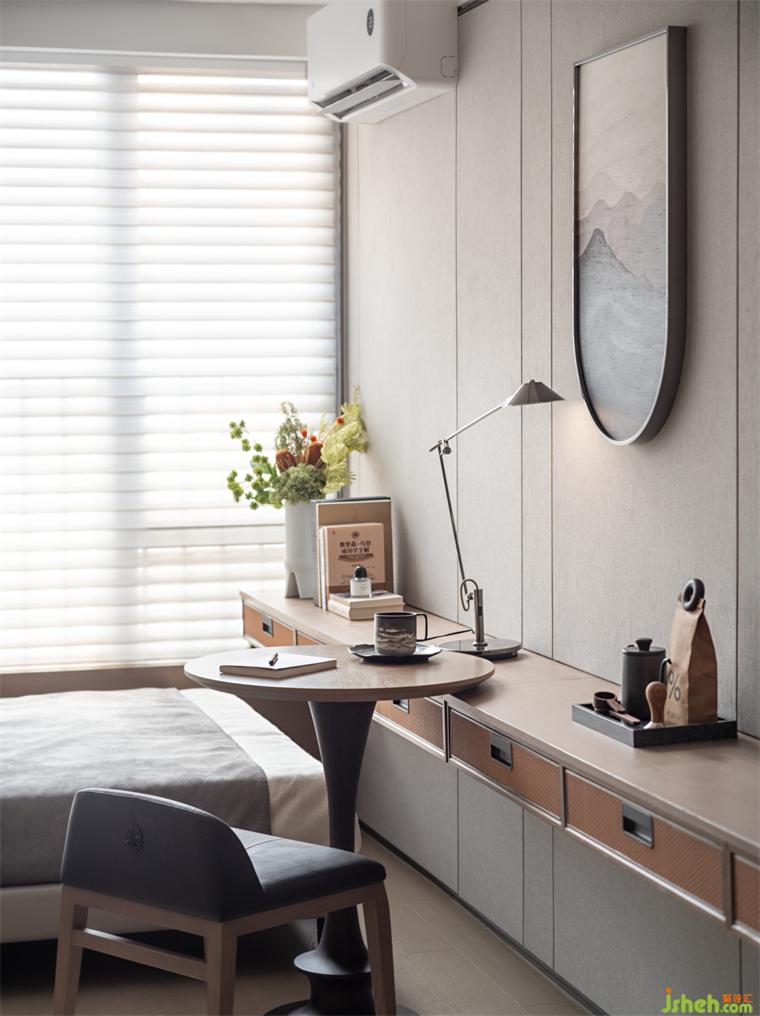 主臥丨生活場景化,居住感濃郁,各個主題空間的搭配得體,樣板房設(shè)計不管是工作室空間內(nèi)的手工工具,還是柜體里面的生活用品,無一不在彰顯著生活痕跡,對于客戶在參觀的時候能夠產(chǎn)生更厚重的共情感受,代入感更強。
