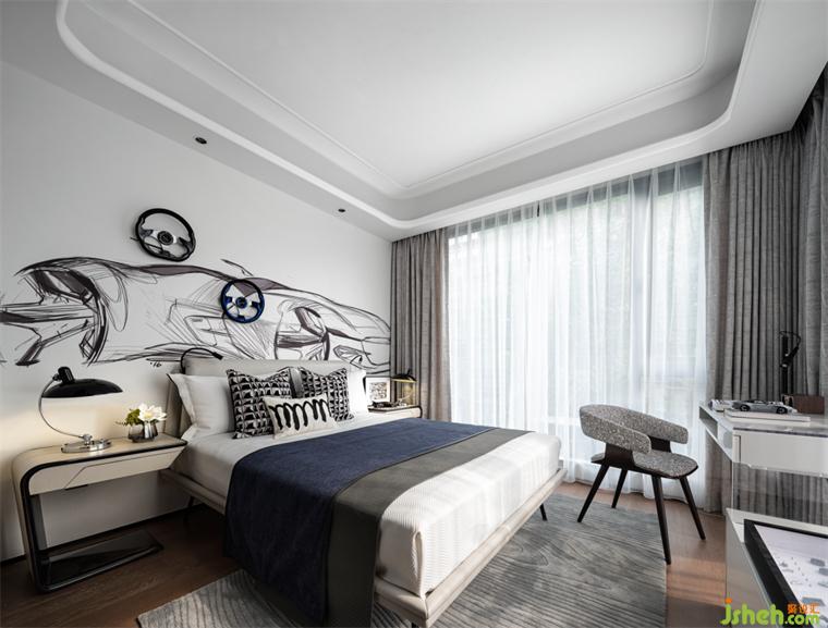 男孩房丨將男孩兒喜歡的汽車Sketch作為背景墻,將他的熱愛融入他的小天地,他有時書桌前暢游在汽車世界里,有時在地毯上擺弄他的汽車模型,他的夢想在這個空間里日益。