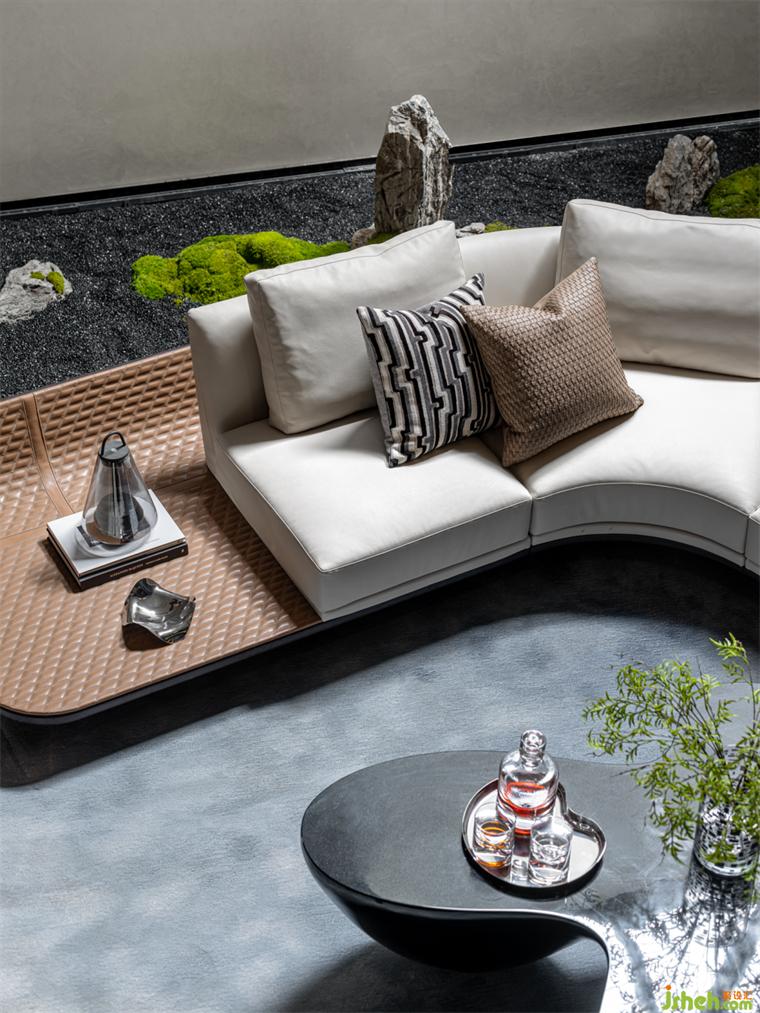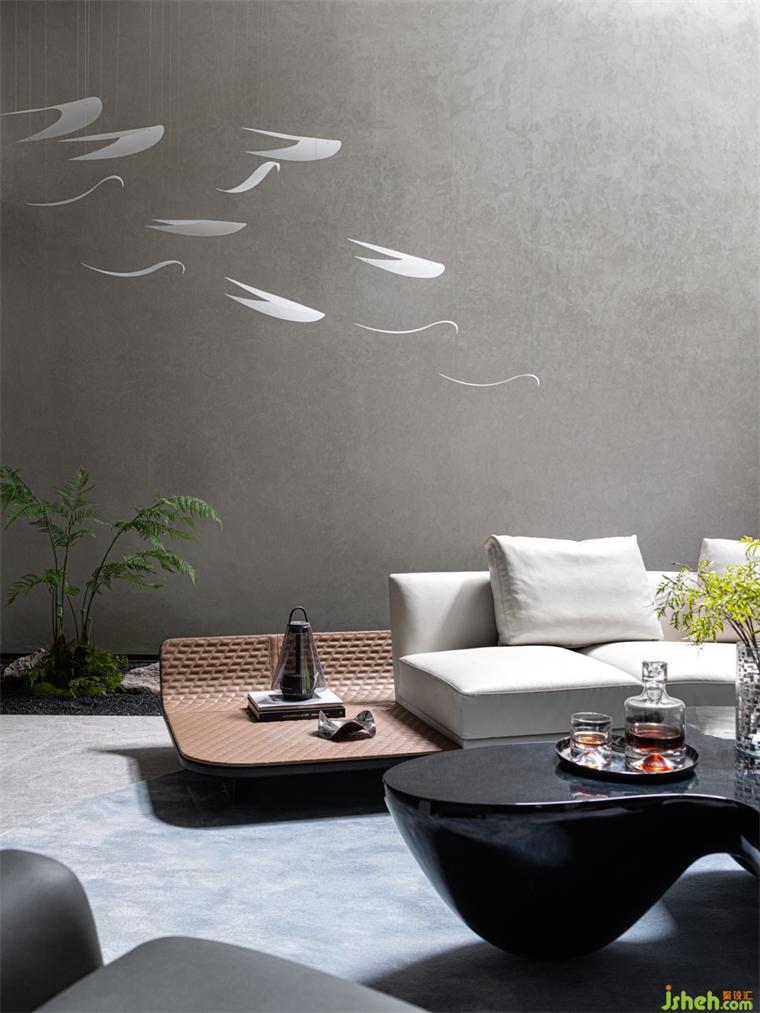 會客廳丨當坐在這個空間里的那一刻起,點燃了格調(diào),煥發(fā)了激情,樣板房設計濃郁的意式風情的沙發(fā)與有著現(xiàn)代主義風格的lounge Chair與茶幾征服著居住的快感,從內(nèi)心變成一種自信和品味。