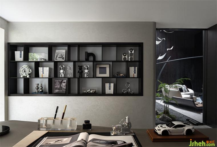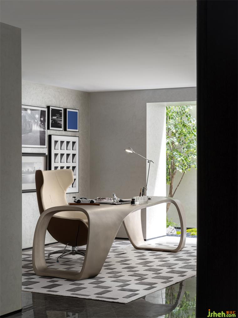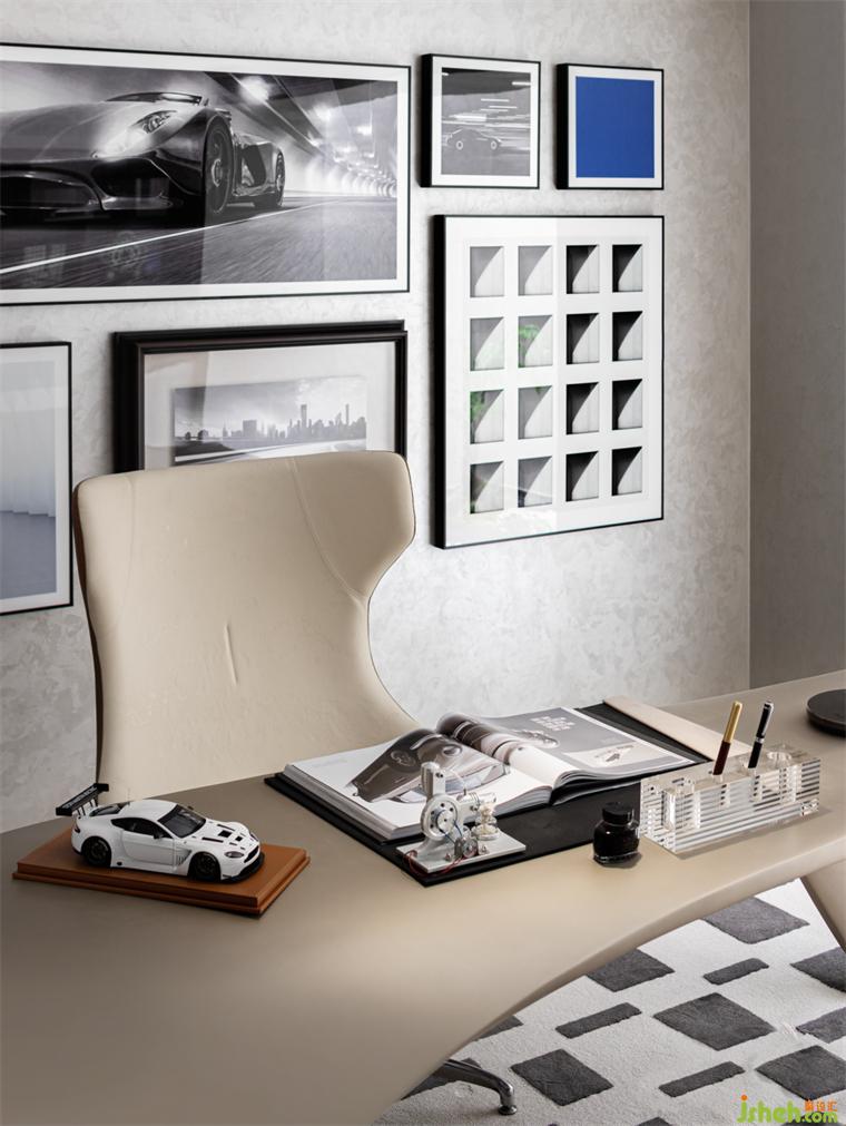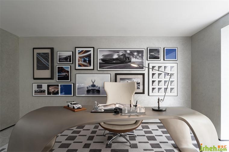 書房丨 整體的氛圍會(huì)顯得穩(wěn)重許多,精煉的線條與精致的家居用品結(jié)合,樣板房設(shè)計(jì)處處展露著主人的修養(yǎng)與態(tài)度,汽車相關(guān)的元素彰顯專業(yè),而空間類的秩序體現(xiàn)個(gè)人的深度與高度。