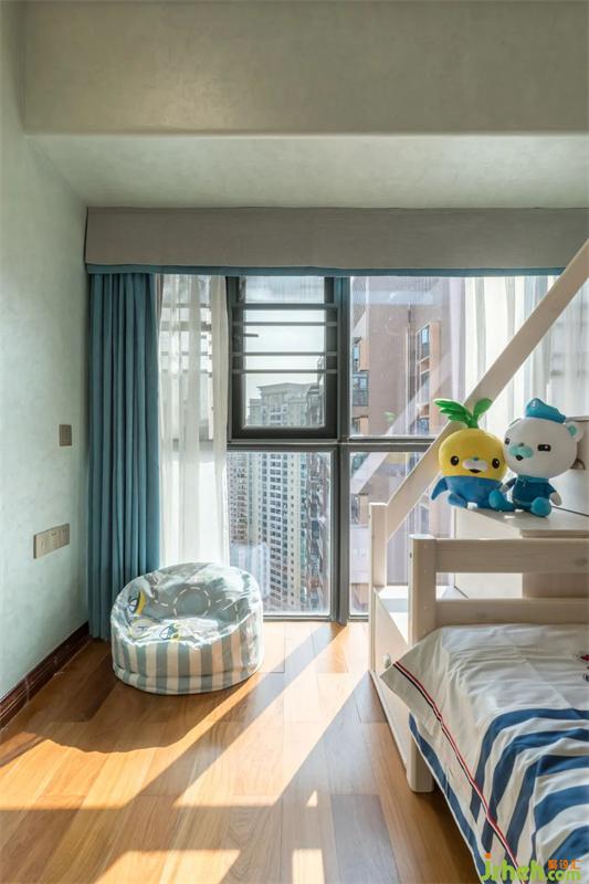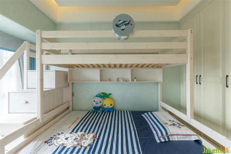 男孩房用略微明亮卻不失清雅的色彩點(diǎn)綴,含蓄中充滿不諳世事的天真,新奇有趣的陳設(shè)體現(xiàn)出獨(dú)特的創(chuàng)造性與想象力