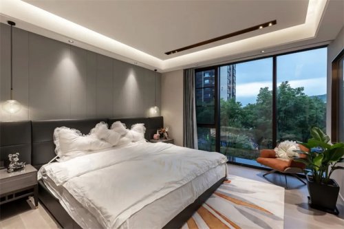 溫潤木質(zhì)外框一體成型地包裹著各種生活機(jī)能,坐在松軟沙發(fā)上,遠(yuǎn)眺戶外綠景,近賞光影與線條之美。