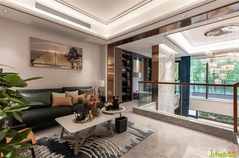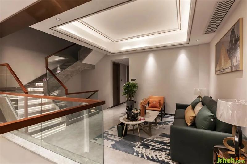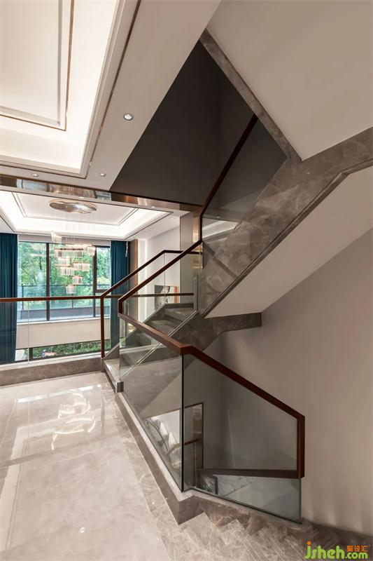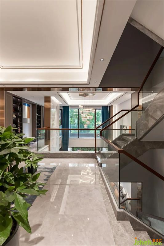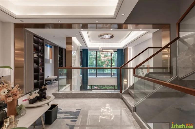 深圳別墅設(shè)計(jì)師調(diào)整樓梯方案,將原客廳的樓板拆除,保留進(jìn)門(mén)口一部分,讓整個(gè)客廳更有層次感。