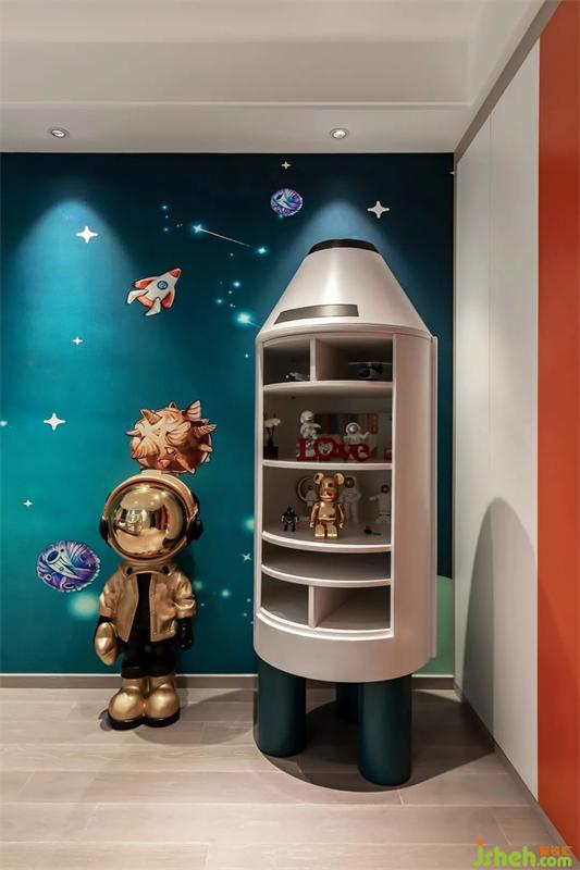 每個(gè)男孩子心里都有一個(gè)宇航員夢(mèng),用宇宙系列的裝飾畫裝點(diǎn)空間再合適不過。床是飛船,書柜是火箭,在這夢(mèng)幻童真的空間里慢慢成長(zhǎng)。