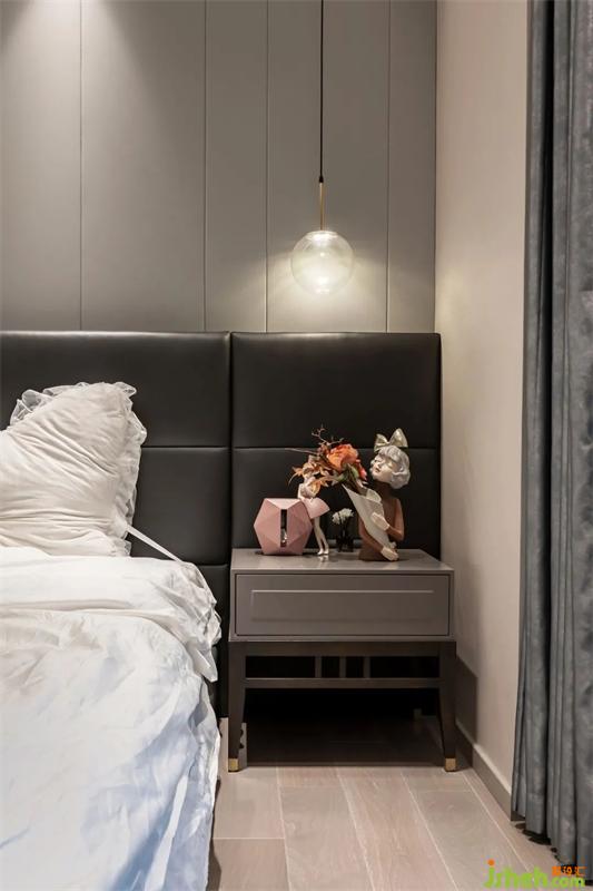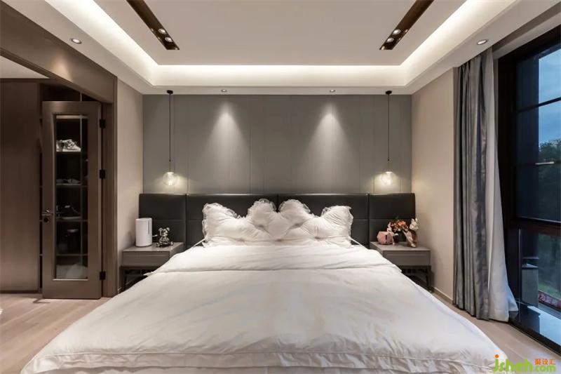 深圳別墅設(shè)計(jì)加入溫潤(rùn)的木質(zhì)元素作為點(diǎn)綴,在臥室呈現(xiàn)出一種寧謐,又富有張力的美感,驚艷之余,又有一種靜謐和舒適的感覺。