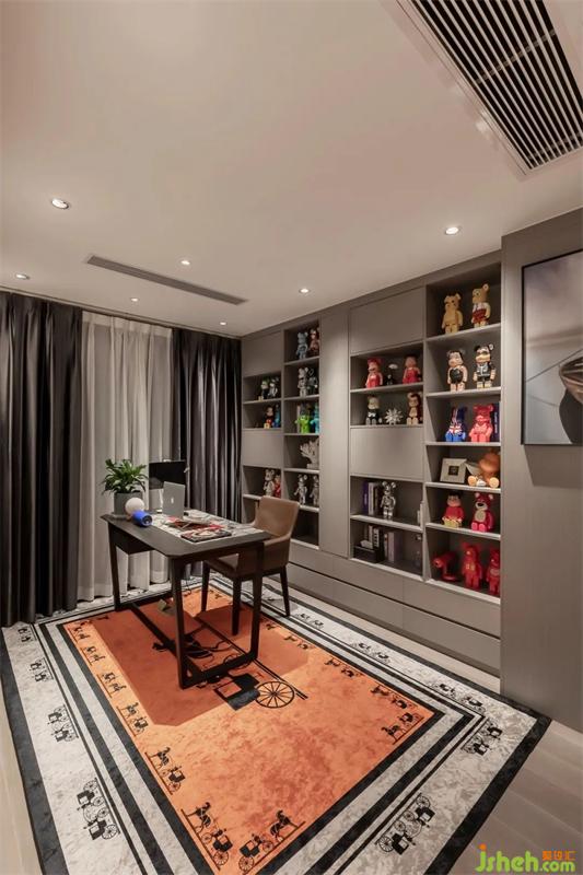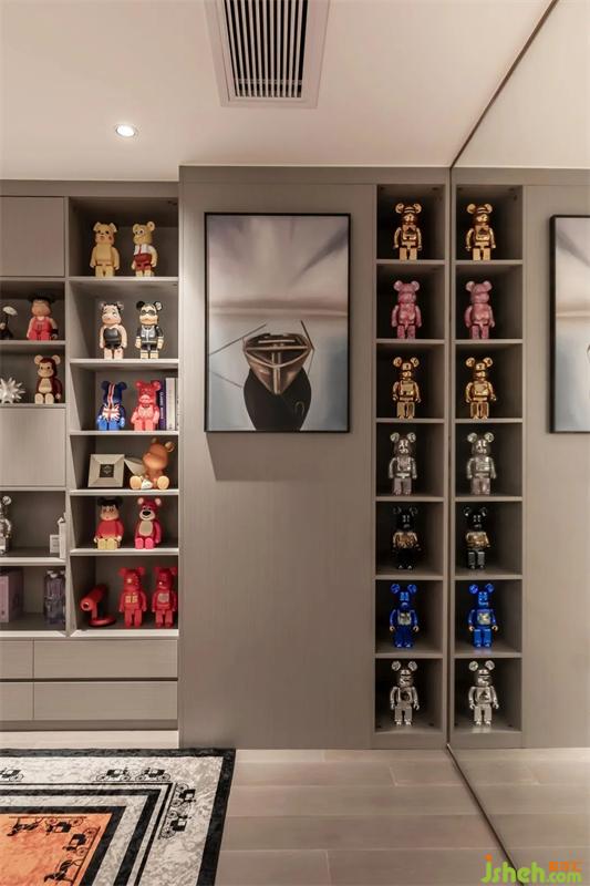 書房柜體內(nèi)部根據(jù)玩偶的大小定制了不同尺寸的隔板,配合適宜的燈光,一處絕妙的“收藏圣地”成為這個(gè)家最獨(dú)特的標(biāo)志。
