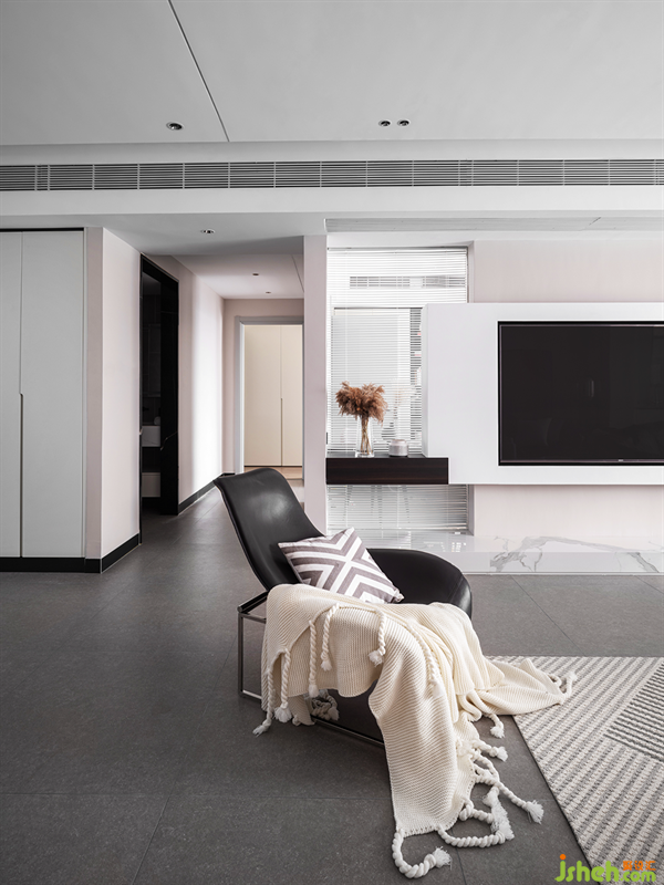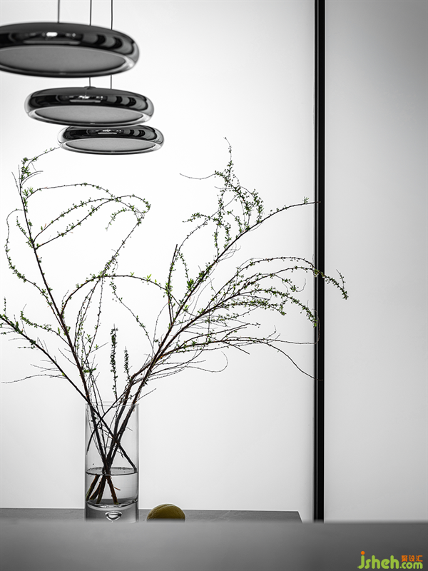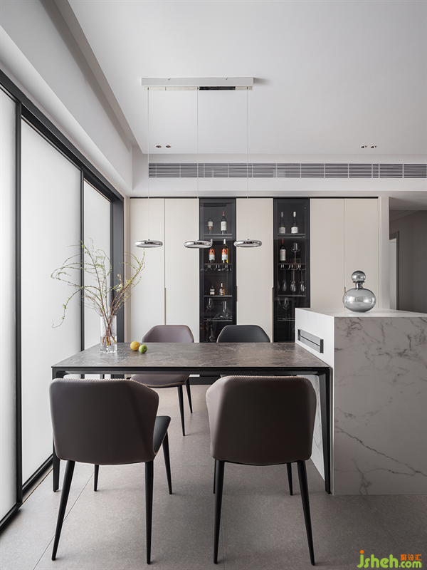 酒柜鑲嵌于整塊墻壁之中,在無風無雨的日子里,約上三兩好友,共同品鑒紅酒,搖曳的燈光與甘醇的酒香是高品質(zhì)生活的顯露。