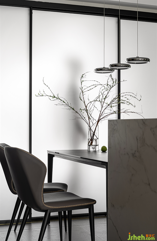 石板餐桌、咖色座椅、極具藝術(shù)感的吊燈融匯在整個餐廳設(shè)計中,增添了更具時尚感和個性感的格調(diào),餐廳也以它獨有的空間語言延伸至每一頓餐食之中。