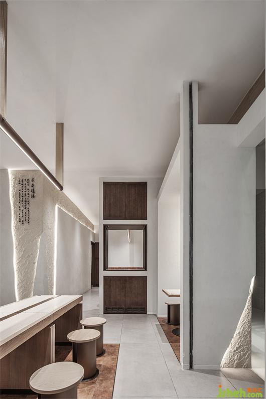 Stepping in, the interior continues the elegant and simple strokes of oriental aesthetics, and the distinctive brand memory is also concentrated in it. A wide range of wooden packages, with a gentle and simple natural atmosphere, have laid a fresh and elegant space tone. Through the rough texture, the red brick and white wall realize the balanced expression of retro and rebirth, so as to respond to the consistent historical and cultural connotation of the brand. The interweaving of light, wall blocks and line modeling also makes the whole space sprout richer levels.